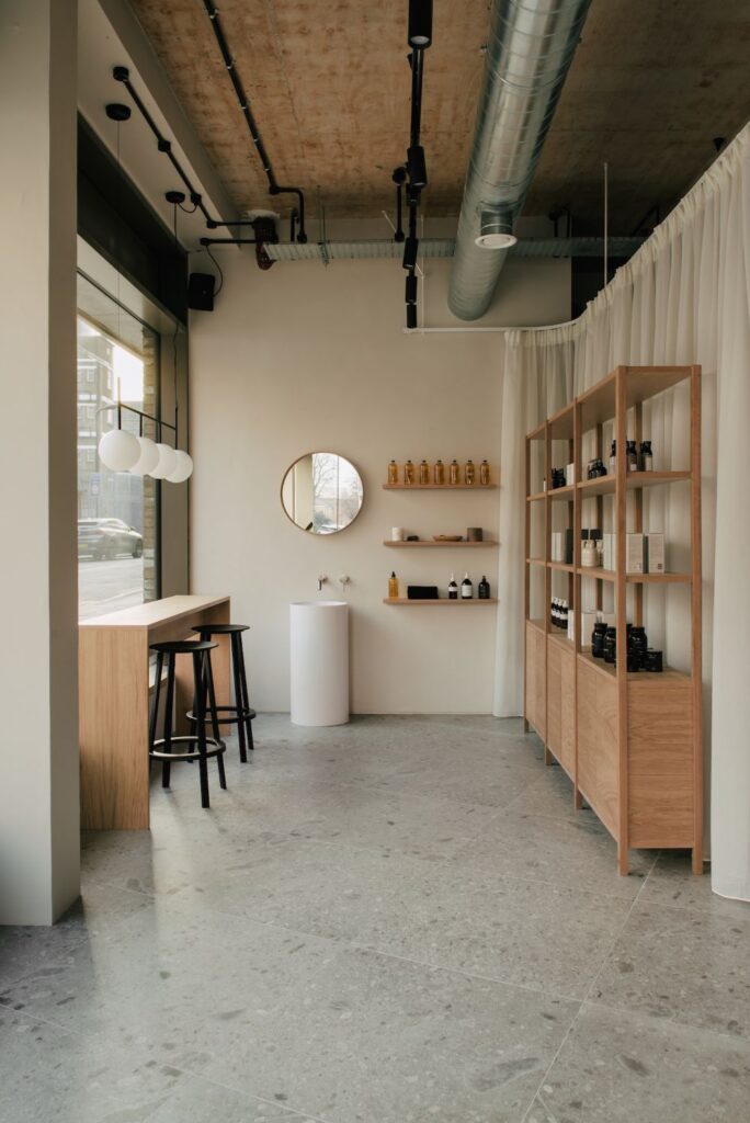 - Key features: Fitting rooms, display systems, specialized lighting